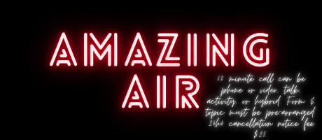 60 min. call can be phone or video, talk, activity, or hybrid. Form & topic MUST be pre-arranged. 24 hr. cancellation notice fee $25.